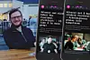 Bildet er en montasje. Til venstre står en kvinne i hvit, grå og svartmønstra jakke i rutete mønster foran en mørkegrå vegg. Til høyre er en skjermdump av et brev.