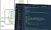 I skjermbildet over vises som standard (i hvert fall hos meg) en blokk som heter "Minimap" - en visuell fremstilling av mapper og filer i prosjektet. Det er mulig å klikke på elementene i kartet for å drille deg ned i koden, og til slutt ender du opp med selve kodefilen i en kodeeditor.